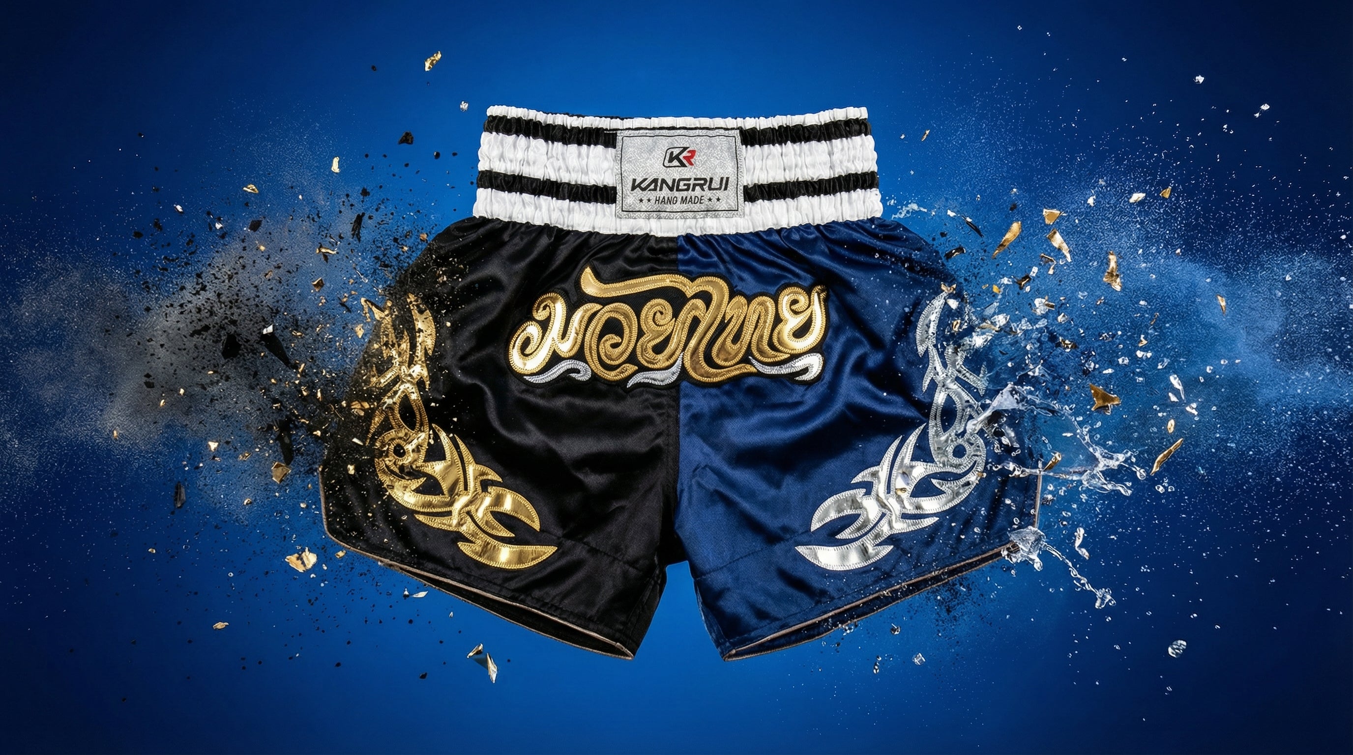 Black and Blue Kangrui Muay Thay Shorts - Midnight Assasin